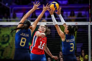 Brezilya’nın özellikle servis karşılama olmak üzere oyunun her alanında rakibine üstünlük kurarak 3-0’lık skorla kazandığı mücadelenin setleri 21-25, 20-25 ve 17-25 sonuçlandı.