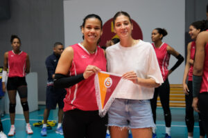 Kaptan İlkin Aydın, Taçspor Tesisleri’nde bir araya geldiği Dominik Cumhuriyeti Kadın Voleybol Milli Takımı oyuncularına Galatasaray flaması takdim etti ve hatıra fotoğrafı çekildi.