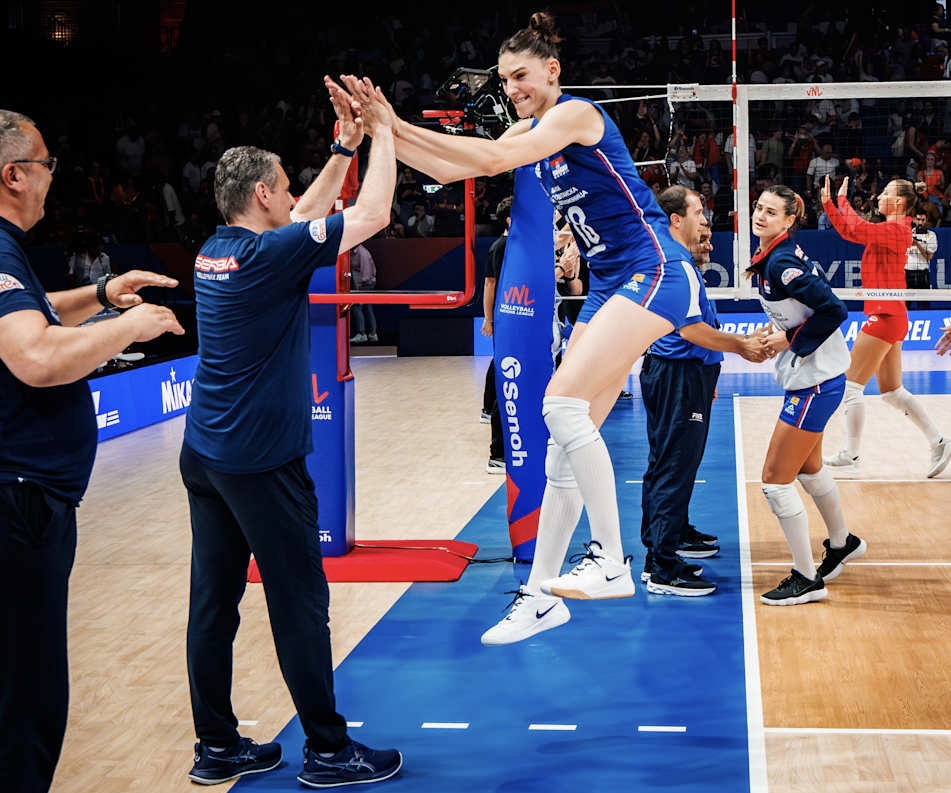 “Milletler Ligi ve Apeldoorn’daki turnuva açısından memnuniyetimizi gizleyemeyiz. Kızları aldıkları galibiyetler ve özellikle Belçika ile Türkiye’ye karşı oynadıkları son iki maçtaki performansları için tebrik etmek istiyorum.”
